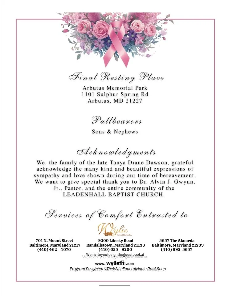 🕊️ Homegoing celebration for sister Tanya “Pixie” Dawson. 43 years of service with Leadenhall Baptist Church